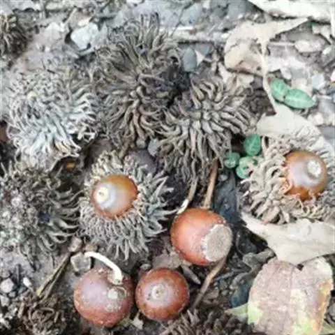 落叶乔木,树高20~25米。树干皮灰褐色或暗灰色,有浅纵裂。果实长圆形,先端突尖,绿色,密生腺毛。坚果有8条明显的棱脊,之间有刻点,壳坚厚,内隔壁骨质,种仁难取。