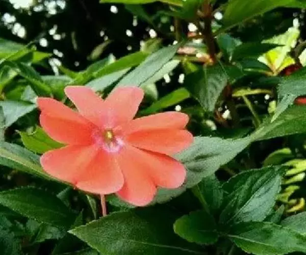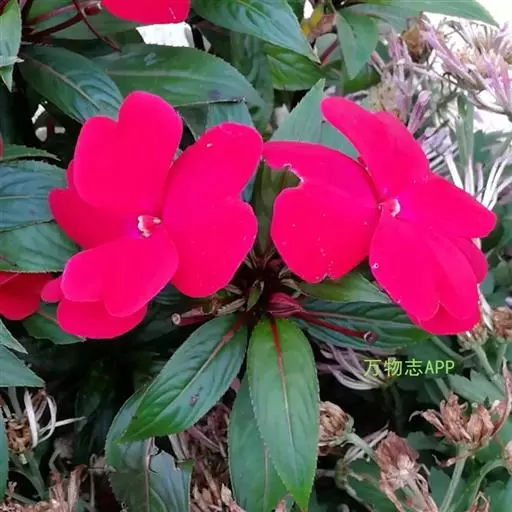新几内亚凤仙花 形态特征:多年生常绿草本。株高25-30cm,茎肉质,光滑,青绿色或红褐色,茎节突出,易折断。多叶轮生,叶披针形,叶缘具锐锯齿,叶色黄绿至深绿色,叶脉及茎的颜色常与花的颜色有相关性。花单生叶腋(偶有两朵花并生于叶腋的现象),基部花瓣衍生成矩,花色极为丰富,有洋红色、雪青色、白色、紫色、橙色等。花期6--8月。
