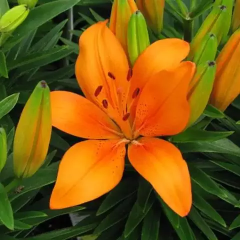 花着生于茎秆顶端,呈总状花序,簇生或单生,花冠较大,花筒较长,呈漏斗形喇叭状,六裂无萼片,因茎秆纤细,花朵大,开放时常下垂或平伸;花色,因品种不同而色彩多样,多为黄色、白色、粉红、橙红,有的具紫色或黑色斑点,也有一朵花具多种颜色的,极美丽。花瓣有平展的,有向外翻卷的,故有“卷丹”美名。有的花味浓香,故有“麝香百合”之称。花落结长椭圆形蒴果。