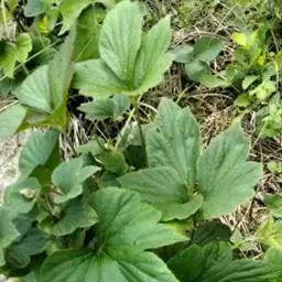 基生叶3-5,有长柄,为三出复叶,有时1-2个或全部为单叶;中央小叶有长柄(长1-6.5厘米),小叶片卵形或宽卵形,长4-11厘米,宽3-10厘米,顶端急尖或渐尖,基部圆形或心形,不分裂或3-5浅裂,边缘有锯齿,两面有疏糙毛;侧生小叶较小;叶柄长3-36厘米,疏被柔毛,基部有短鞘。