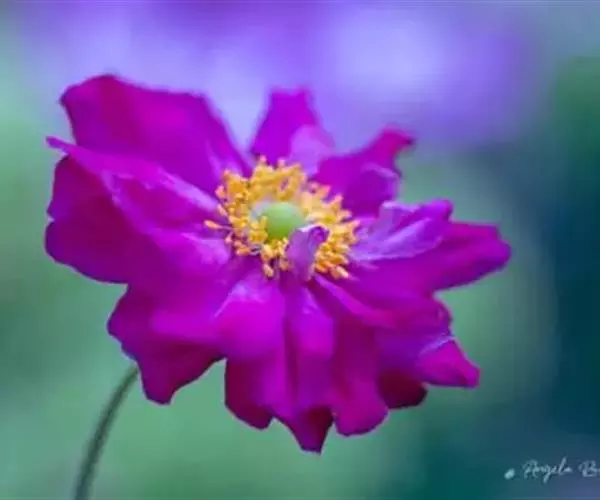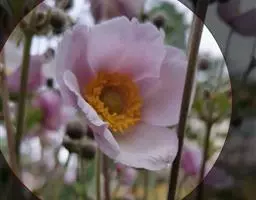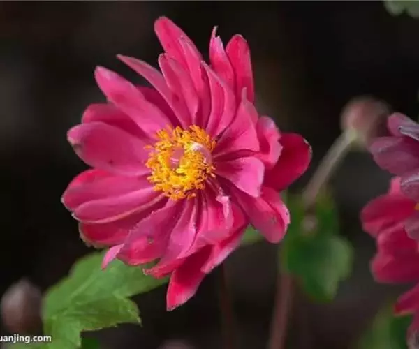 秋牡丹(学名:Anemone hupehensis Lem. var.japonica (Thunb.) Bowles et Stearn)别名是野棉花。是毛茛科,银莲花属多年生草本植物,株高可达120厘米。根状茎斜或垂直,基生叶有长柄,小叶片卵形或宽卵形,边缘有锯齿,两面有疏糙毛;花葶直立,聚伞花序,有较多花,苞片有柄为三出复叶,似基生叶;花梗有密或疏柔毛;萼片紫红色或粉红色,倒卵形,花药黄色,椭圆形,花丝丝形;聚合果球形,7月至10月开花。