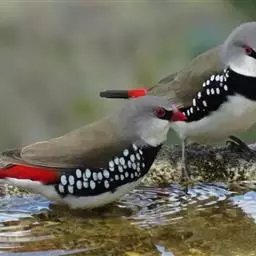 斑胸草雀不喜欢水浴, 对水浴要求不高。气温较高时可两三天供水浴一次,冬季每周一次即可。它们用双翅和身体频频拍击水面,使水珠溅在羽体上,进行水浴。水浴可在水浴笼中进行,也可在盛水的浅盆中让其水浴。 水浴时只要稍湿羽毛,以后雌雄鸟相互整羽即可。