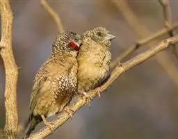 在求偶中,雄斑胸草雀常在栖木上磨喙,姿态好似鞠躬。 雄斑胸草雀在求偶过程中会发出悦耳的鸣唱,还会不时地叼回一些树枝和草叶等给雌雀,雌雀则会利用这些材料来筑巢。 斑胸草雀的雌鸟喜欢以“歌”择偶,雄鸟经常“唱”且“唱”得久、调子多,就更受雌鸟的青睐。如果雄鸟的鸣叫声区别只是声调高低不同,雄性斑胸草雀声调越高越对雌性斑胸草雀有吸引力。 斑胸草雀不仅有着长期的伴侣关系,而且也高度社会化。 配对成功的雌雄鸟,成双并卧,相互啄羽,亲密无间。