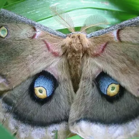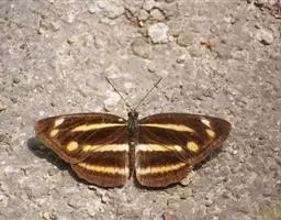 翅展50—60mm。雄前翅面基半部深蓝色,有黑绒光泽,中室内有2条不明显橙色棒带,2室眼纹不明显;后翅 面除后缘为褐色外,大部分呈宝蓝色光泽。雌深褐色,前翅中室内2橙色棒带和2室的眼纹明显;后翅大部为深褐色。眼状斑比雄蝶大而醒目。本种季节型明显。秋型前翅反面色深,后翅多为深灰褐色,斑纹模糊。夏型灰褐色,前翅黑色眼纹明显,基都有3条橙色横带;后翅眼纹不明显,红褐色波状斑驳分布其间。冬型颜色较深暗,所有斑纹皆不明显;前翅外缘6脉端明显向外突出。