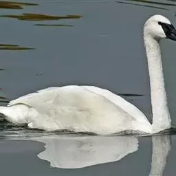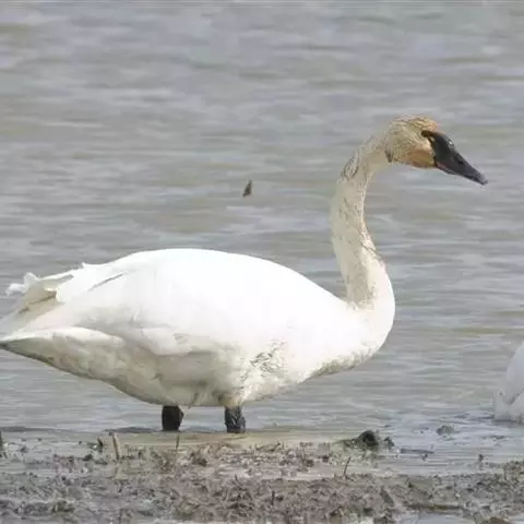 扁嘴天鹅:体长90-115厘米,体羽白色,羽端黑色,在飞行时则很明显。雁喙和脚红色。…