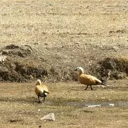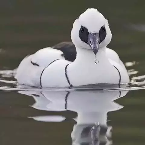 虹膜褐色;嘴灰色;脚蓝灰。雌鸟和幼鸟表面上类似赤颈鸭。不同的形态和色彩变化实在太微妙,是难以确认身份的群体,它们常常一起飞行。训练有素的眼睛,红色的胸部,颈部和两侧的灰色及额头上部明亮白色,对比其他种类较易区别。