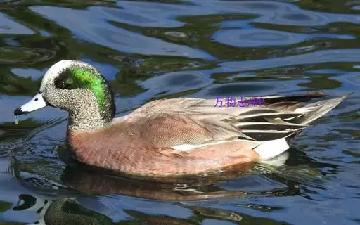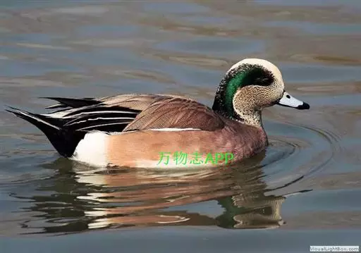 绿眉鸭(学名:Anas americana)属河鸭,又称葡萄胸鸭。中等体型,身长约52厘米。非常似赤颈鸭但体型略大。繁殖期雄鸟宽阔的绿色眼线横贯苍白色的头部而极易分辨。在北美洲的北部和西北部繁殖。冬季迁移到美国东岸、西岸和南岸,中美洲。喜欢沼泽地区。吃水草、昆虫、小鱼、贝壳。