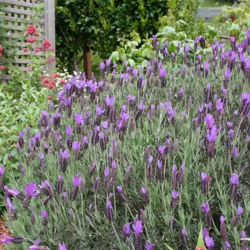 西班牙薰衣草唇形科半耐寒小型灌木,平地花期为2-5月,中高海拔山区花期为4-10月,花形特殊,谢後有宿存苞片,常被制成乾燥花,既芳香又美观。植物特性为半耐寒之小型灌木种,生长环境喜欢充足阳光,即使是夏日艳阳照射,也无害。生长期间保持微湿,可以等种植材料稍微的乾燥再浇水,耐寒性中等程度,喜好温度5℃-10℃之间。