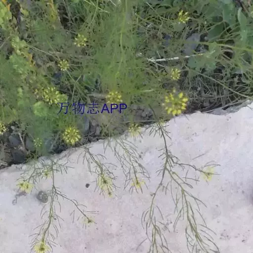 播娘蒿(Descurainia sophia (L.)Webb. ex Prantl)是十字花科,播娘蒿属一年生草本植物,高可达80厘米,叉状毛,茎生叶为多,茎直立,分枝多,叶片为3回羽状深裂,末端裂片条形或长圆形,裂片下部叶具柄,上部叶无柄。花序伞房状,萼片直立,早落,长圆条形,花瓣黄色,长圆状倒卵形,长角果圆筒状,无毛,果瓣中脉明显;种子多数,长圆形,4-5月开花。