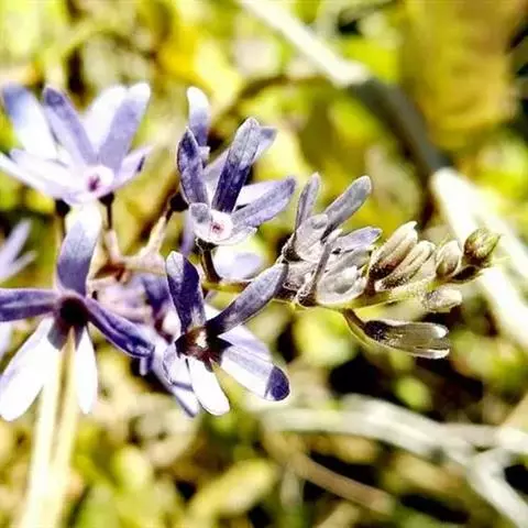 总状花序排列成松散圆锥状,顶生;花小且通常着生在中轴的一侧,高脚碟状;花冠蓝紫色或白色;花期5~10月。
