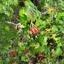 核果肉质,卵形,金黄色,成串包在萼片内,有光泽。 叶对生,有黄色或白色斑,具短柄,叶片卵状椭圆形或倒卵形,有彩色斑纹,具锯齿。花冠淡紫色,总状花序顶生或腋生;果实熟时桔黄色。