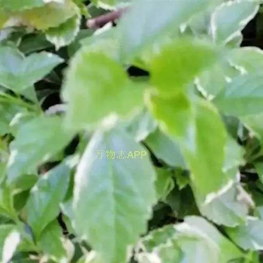 常绿灌木或小乔木。株高1~3m,枝下垂或平展,茎四方,绿色至灰褐色。 花叶假连翘 叶对生,卵状椭圆形或倒卵形,长2~6cm,中部以上有粗刺,纸质,绿色。