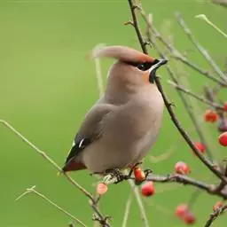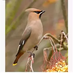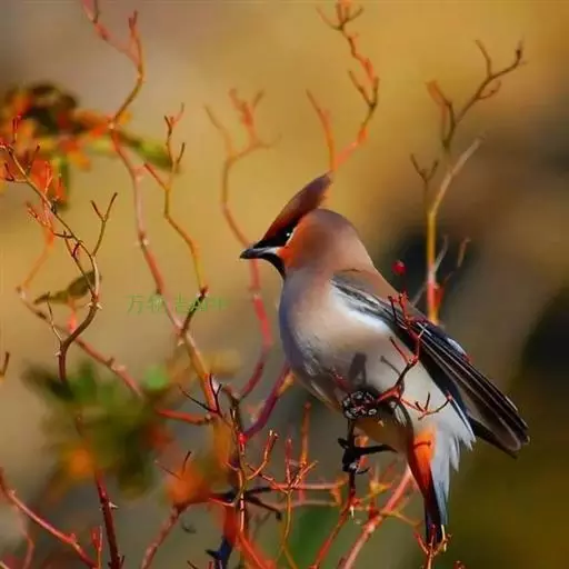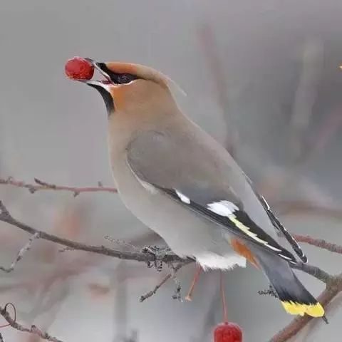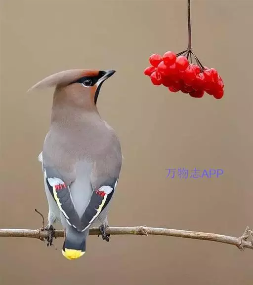 太平鸟属雀形目,太平鸟科的鸟类。太平鸟通体灰褐色,具羽冠;颏、喉黑色,尾羽先端黄色;虹膜暗红色;嘴黑;脚、爪黑色。在国内为冬候鸟,在东北、内蒙古及华北一带均可见到;新疆;四川、福建等地偶尔遇见。太平鸟为我国的旅鸟及冬候鸟,集结成大群在辽宁以南西至新疆、南至福建、台湾的广大地区越冬。秋季迁来的时间较晚,为各种旅鸟的后队;一般最早为11月初,迟来者可在次年1月,个别年份可在9月中旬出现。共分化为两个亚种,中国有一个。羽色绚丽,常被饲为笼鸟,供观赏用。