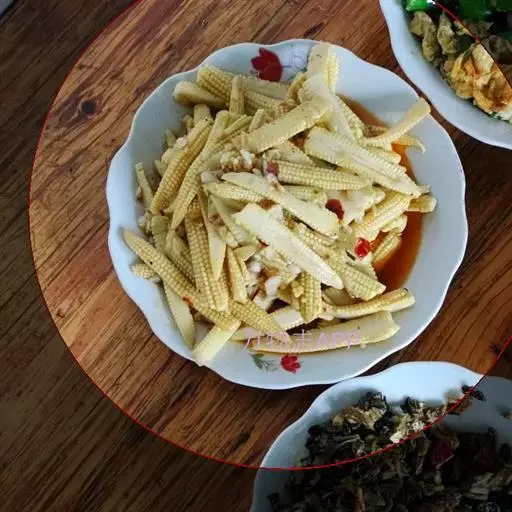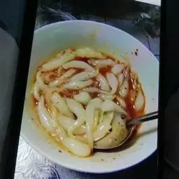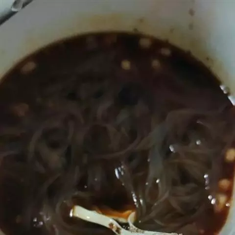 5:依次放入0.5调羹香菇牛肉酱、0.7调羹罐罐香鲜笋下酒菜、2调羹西红柿酱,加热一分钟;