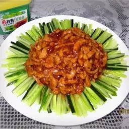 及鸡精搅入粉内,煮滚及至汁浓,将虾放入汁内。
