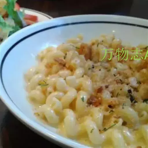 原料:通心粉3汤匙或适量,熟鸡蛋黄1只搓成蓉,忌廉粟米1/3罐