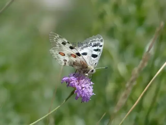 阿波罗绢蝶:翅展约7-8.4厘米。前翅较圆,白垩色,翅表有许多黑点、灰白斑及无鳞透明区,这些斑点的形状、密度及其强度常随产地的不同而有所变化,但后翅通常总有显著的鲜红色斑点。触角主干灰白色,有浅黑色环带。雄性外生殖器的背兜发达;1对爪形突较细长,较弯成弓状。雌性外生殖器的产卵瓣半圆形,具鬃;后表皮突粗长,末端钝。绢蝶翅形混圆;翅膜五色透明;状如丝绢,因此得名。翅面常有黑色、红色和蓝色斑点或者斑纹。栖息于海拔750-2000米的高山区。耐寒性强,常常生活在雪线上下。一年发生1代,以卵越冬。成虫8月出现。幼虫以景天属植物为寄主。该种是珍贵的大型绢蝶,在波兰和西班牙早已灭绝,…