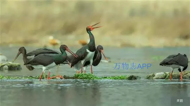 黑鹳是鹳形目鹳科鹳属鸟类,俗称乌鹳、钢鹳、老鹤。黑鹳头、颈和脊均呈黑褐色,故名黑鹳。黑鹳上体羽黑色、并带有绿紫色金属光泽,胸腹部羽白色;嘴、腿均红色;两性相似;成鸟嘴长而直,基部较粗,往先端逐渐变细;脚长,前趾基部间具蹼,虹膜褐色或黑色,眼周具裸露皮肤,裸皮红色;幼鸟头、颈和上胸褐色,颈和上胸具棕褐色斑点,嘴、脚褐灰色或橙红色,为国家一级保护野生动物。黑鹳在中国见于除西藏外的各省区,在国外广泛分布于南美以外的世界各国,阿尔金山海拔800~4300米的地带都有分布。黑鹳主要栖息于大型湖泊、沼泽和河流附近,繁殖于崖壁或者高树上。越冬时多活动于开阔的平原,冬季可能成家族群活动。黑鹳不善鸣叫,…