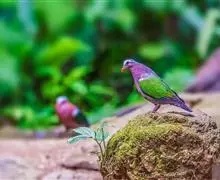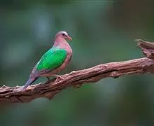 绿背金鸠体长约25厘米,是中等体型、尾甚短的地栖型斑鸠。下体粉红,头顶灰色,额白,腰灰,两翼具亮绿色。…全部>>