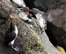 海雀是鸟纲鸥形目海雀科鸟类的通称,是典型的海鸟,体羽黑白色。中国有3种:扁嘴海雀,角嘴海雀,…全部>>