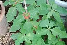 猩猩草:常绿或半常绿灌木,盆栽时株高0.5米-2米,在亚热带地区可长到6米以上。茎直立而光滑,单叶互生,卵状椭圆形至阔披针形,具不规则的深缺刻。长10-15厘米。花小,有蜜腺,排列成密集的伞房花序。…全部>>