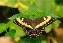 金凤蝶,是鳞翅目凤蝶科凤蝶属动物。金凤蝶为中型凤蝶,翅展70-84毫米,翅背面底色黑褐色,翅脉黑色,翅室具黄斑;前翅背面基部呈暗黄色,亚外缘为黑色,内具一列小黄斑;后翅背面亚外缘区具黑宽边,…全部>>