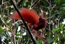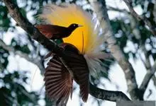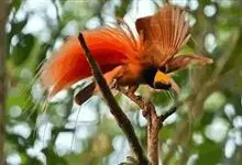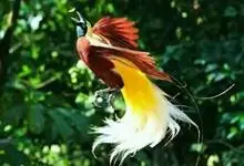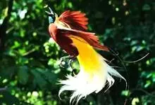 大极乐鸟是极乐鸟属中最大的鸟种。成年雄鸟体长可达到43厘米,雌性可达35厘米。雄鸟的额、颊、喉等墨绿色;头、颈黄色;上体暗赤栗色;腹部葡萄红色,胁部有长饰羽,其基部橙黄,中部黄色,…全部>>