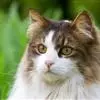 挪威森林猫是猫科猫属哺乳动物。挪威森林猫的头部从两耳根至下巴呈一个等腰三角形,鼻子中长,笔直;耳朵较大,耳尖浑圆,多毛,像山猫的耳朵一样警惕地朝向前面;幼年猫的眼睛几乎是圆的,成年后呈较大的杏仁状,…全部>>