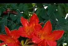 火焰木,又名苞萼木、喷泉树,为紫葳科常绿大乔木,株高10—20米,叶为奇数羽状复叶,对生,较大,斜椭圆形,全缘,纸质,叶面深绿色。 全部>>