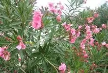 夹竹桃,又名红花夹竹桃、欧洲夹竹桃,是夹竹桃科夹竹桃属的一种常绿直立大灌木,枝条灰绿色,含水液。叶披针形,3叶轮生。聚伞花序顶生,花冠粉红至深红色,花冠漏斗状,有特殊香味。蓇葖果,圆柱形。种子长圆形,…全部>>