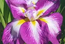 玉蝉花是鸢尾科鸢尾属的多年生草本植物,根状茎粗壮,斜伸;叶线形,中脉明显,长可达80厘米,宽约1厘米;花深紫色,直径约10厘米,花被管漏斗形,外花被裂片倒卵形,爪部细长,中央下陷呈沟状,…全部>>