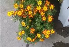 万寿菊是菊科万寿菊属一年生草本植物,别名孔雀菊、缎子花、臭菊花、西番菊、红黄草、小万寿菊、臭芙蓉、孔雀草。万寿菊茎近基部分枝。叶羽状分裂,长5-10厘米,宽4-8厘米,裂片长椭圆形或披针形,具锐齿,…全部>>