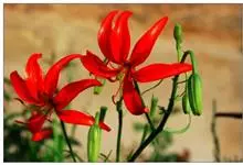山丹是百合科百合属的多年生草本植物。鳞茎卵形或圆锥形,鳞片长圆形或长卵形,白色;叶散生茎中部,线形,边缘有乳头状突起;花单生或数朵成总状花序,花鲜红色,常无斑点,花被片反卷,…全部>>