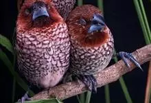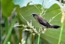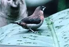 栗腹文鸟:小型鸟类,体长10-12厘米。嘴蓝灰色,基部粗厚,先端尖、呈圆锥状, 脚亦为蓝灰色,整个头、颈和上胸黑色,其余体羽栗色,或下胸和腹中央至尾下覆羽黑色。尾栗红色。全部>>
