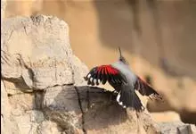红翅旋壁雀:体重15-23克,体长120-178毫米。是一种体型略小的鸟类。尾短而嘴长,翼具醒目的绯红色斑纹。飞羽黑色,外侧尾羽羽端白色显著,初级飞羽两排白色点斑飞行时成带状。繁殖期雄鸟脸及喉黑色,…全部>>