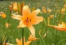 重瓣萱草 L. var. kwanso Regel),百合科萱草属植物。根近肉质,中下部有纺锤状膨大;花桔黄色,花被裂片多数,雌雄蕊发育不全。花被管较粗短,长2-3厘米;内花被裂片宽2-3厘米。…全部>>