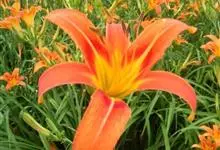 萱草 L.)是阿福花科、萱草属植物。根近肉质,中下部有纺锤状膨大;叶一般较宽;花早上开晚上凋谢,无香味,桔红色至桔黄色,内花被裂片下部一般有“∧”形采斑。这些特征可以区别于中国产的其他种类。…全部>>