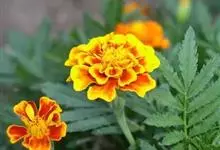 万寿菊是菊科万寿菊属一年生草本植物,别名孔雀菊、缎子花、臭菊花、西番菊、红黄草、小万寿菊、臭芙蓉、孔雀草。万寿菊茎近基部分枝。叶羽状分裂,长5-10厘米,宽4-8厘米,裂片长椭圆形或披针形,具锐齿,…全部>>
