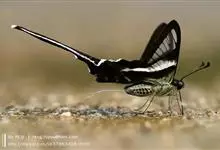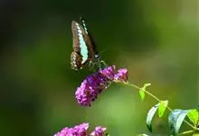 青带凤蝶Graphium sarpedon ,又名青凤蝶,是最普遍的中型凤蝶,飞行速度很快。青带凤蝶的翅膀中央有许多浅蓝色的斑点,很整齐地排列成一条直线。这些斑点由上而下逐渐变大,就像一条青色的带子。全部>>
