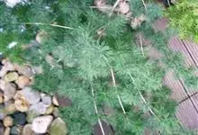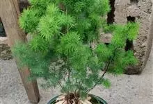 蓬莱松是天门冬科、天门冬属多年生丛生草本植物。宿存,圆柱形肉质根,纵截面为绿色和表面灰色。植株高可达3米。茎呈圆柱形或近四边形,底部木质化,具有灰色或灰褐色。幼嫩的茎在每个节上都被紫绿色鳞片包,…全部>>