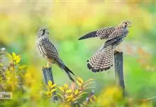 红隼:是隼科、隼属的小型猛禽之一。体重173-335克,体长305-360毫米。翅狭长而尖,尾亦较长,外形和共同爪隼非常相似。雄鸟头蓝灰色,背和翅上覆羽砖红色,具三角形黑斑;腰、尾上覆羽和尾羽蓝灰色,…全部>>