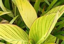 金脉美人蕉叶片淡黄色,叶脉绿化,叶缘具红边,全缘,大花美人蕉之变种全部>>