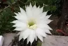 仙人球花 仙人掌科,仙人球属。植株单生或成丛。幼株球形,老株长成圆筒状,高可达75厘米,直径12-15厘米。球体暗绿色,具棱11-12。刺锥状,黑色,长1-1.5厘米。花着生于球体侧方,大型嗽喇叭状…全部>>