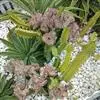 彩春峰是大戟科大戟属肉质植物,彩春峰的肉质茎依品种的不同有暗红色、乳白、淡黄及镶边、斑纹等复色。彩春峰的性状很不稳定,栽培中经常会发生色彩的变异,如暗紫红色肉质茎会长出白色黄色斑块等。…全部>>