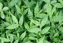 竹叶草 P. Beauv.)是禾本科求米草属一年生草本植物。杆纤细,基部平卧,节着地生根;叶披针形至卵状披针形,基部包茎但不对称;圆锥花序,分枝延伸互生而疏离,小穗李生;颖草质,边缘被有纤毛,…全部>>