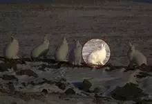 北极兔, 是兔科、兔属的哺乳动物。北极兔体型巨大,头比一般的兔子大且长,耳朵较小,腿长,四肢非常有力灵活,夏季身体背面浅灰色,冬季身体背面白色。北极兔属于群居动物,鼻子、耳朵灵敏,不羞怯胆小,易于驯服,…全部>>