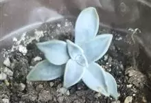 胧月 E.Walther)是景天科,风车草属多肉植物,常绿蔓生亚灌木,叶肥厚无柄,灰蓝色,阳光充足时呈粉红色,叶片枝顶簇生成莲座状,乳白色,花冠5裂,上有紫红色斑点,雄蕊两轮排列,花药鲜红色,…全部>>