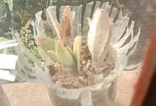 棒叶落地生根是景天科、落地生根属植物。茎直立、粉褐色。叶圆棒形,上表面有沟、粉色,有红褐斑。叶片交互对生,交叉排列成十字形。叶端锯齿上长有很小的幼株、落地后即可生根成活。原产非洲马达加斯加。…全部>>