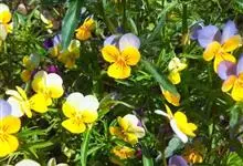 角堇:为堇菜科堇菜属多年生草本植物。株高10-30厘米 ,宽幅20-30厘米。具根状茎。茎较短而直立,分枝能力强。花两性,两侧对称,花梗腋生,花瓣5,花径 2.5-4.0厘米。花色丰富,…全部>>