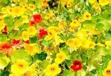 旱金莲是旱金莲科旱金莲属蔓生一年生草本植物。叶互生,叶柄向上扭曲,盾状,叶圆形,具波状浅缺刻,下面疏被毛或有乳点;花黄、紫、桔红或杂色,花托杯状,花瓣为圆形,边缘具缺刻;果实为扁球形;花果期6-10月,…全部>>